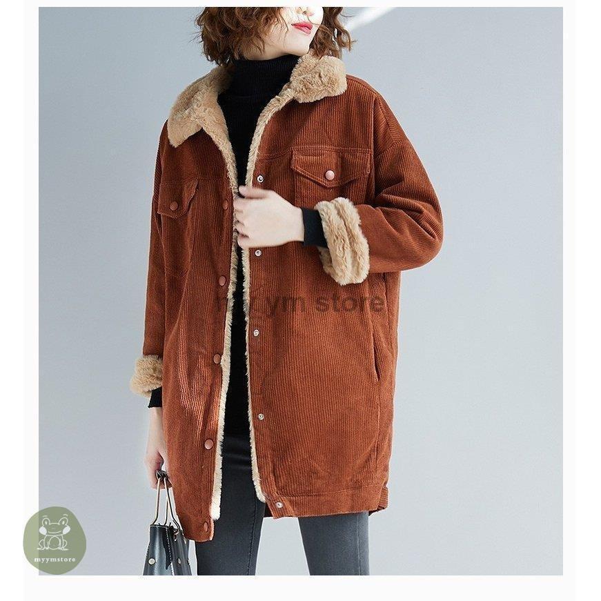 アウター レディース ボアコート 長袖 コーデュロイ ロング 裏起毛 カジュアル 防寒 バイカラー 秋冬