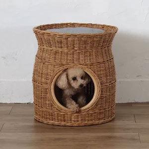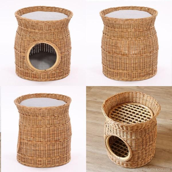ラタン ペットハウス 雑貨 ペット ハウス タワー インテリア バスケット かご 籐 アジアン ナチュラル 天然素材 クッション