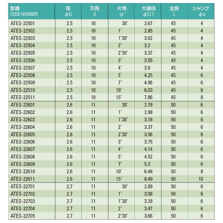 【送料無料】 ATOM ATES-21911 テーパーエンドミル φ1.9x15°