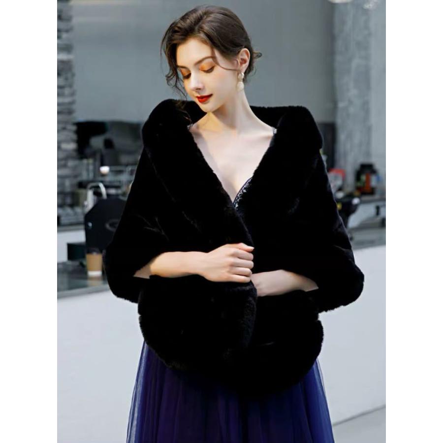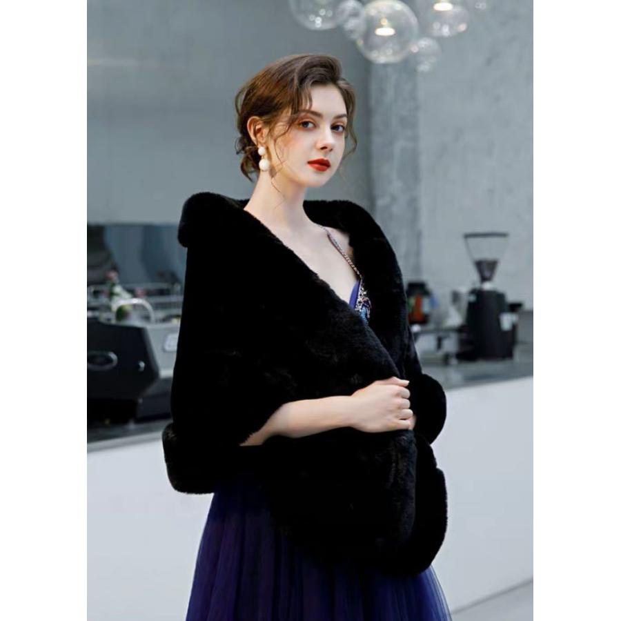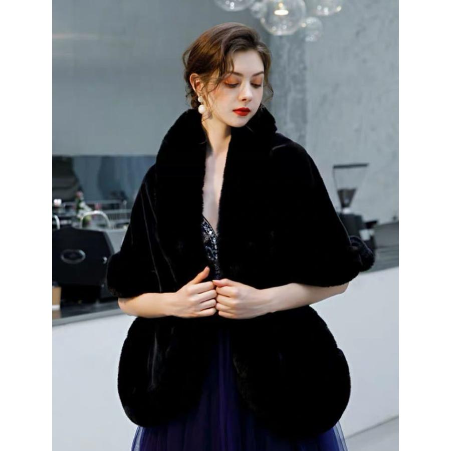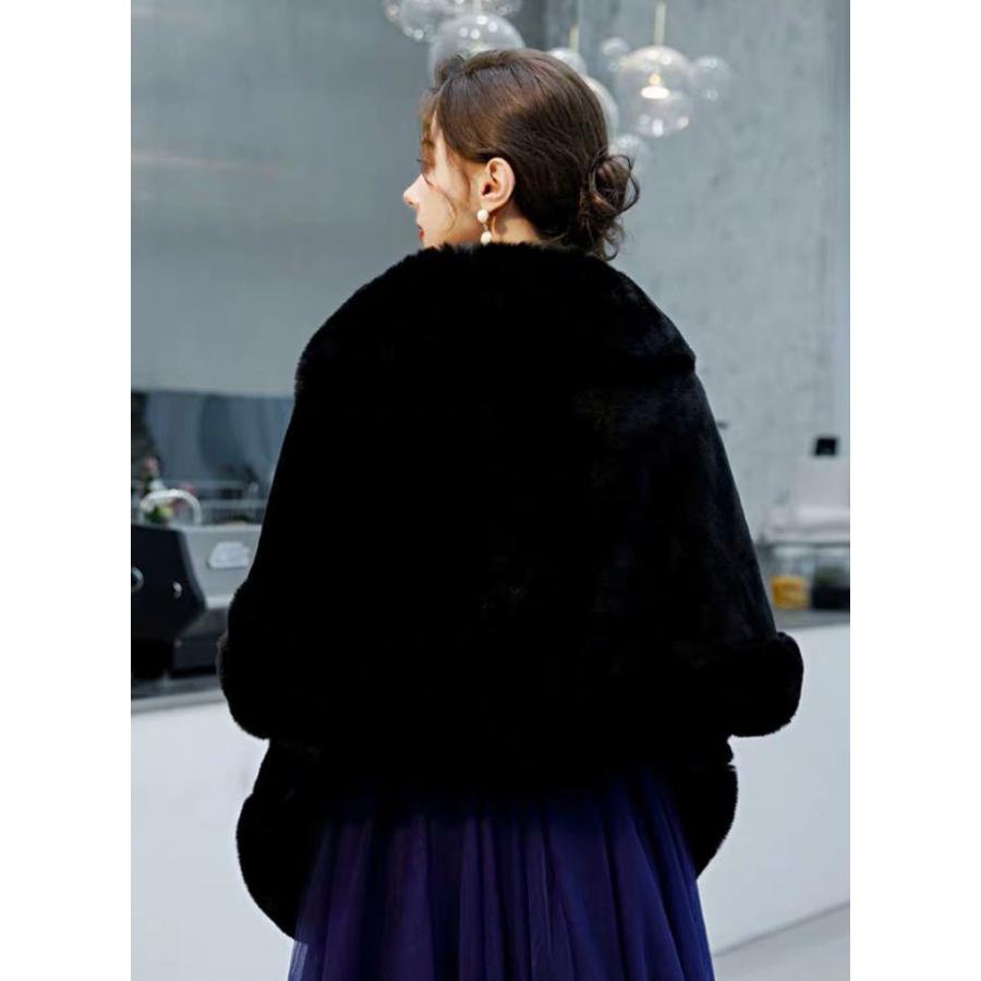 A36019 豪華肩掛け 大判ショール ファーストール 毛皮風ケープ 結婚式 ボレロ ポンチョ