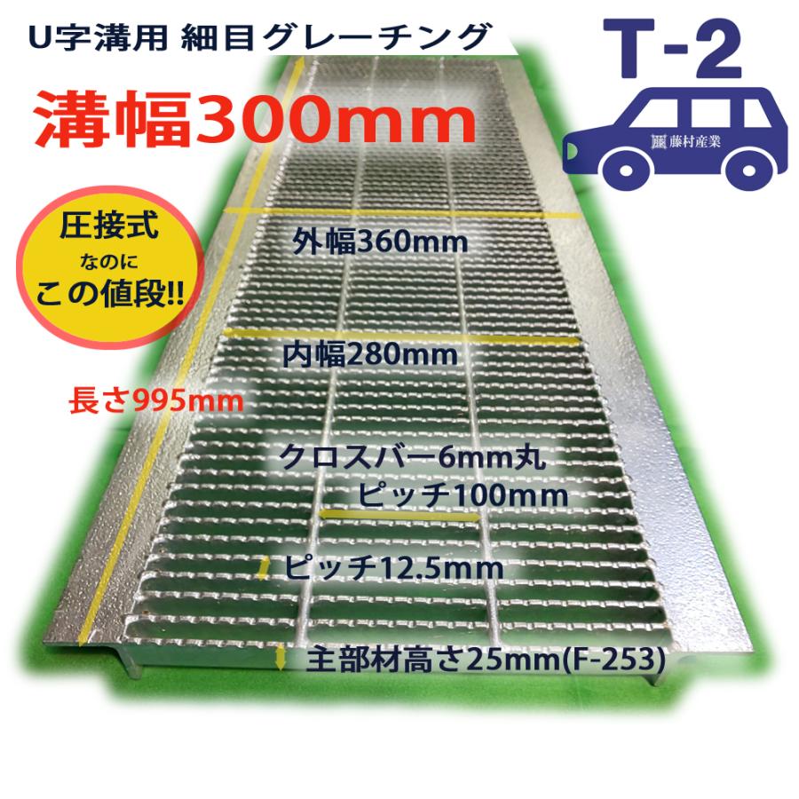 U字溝用 グレーチング 溝蓋 細目 ノンスリップ 圧接式 溝幅 300mm T2(乗用車程度)型番UNH253F30