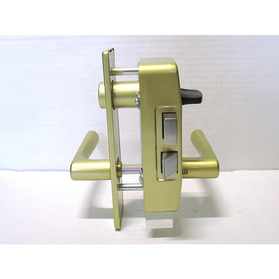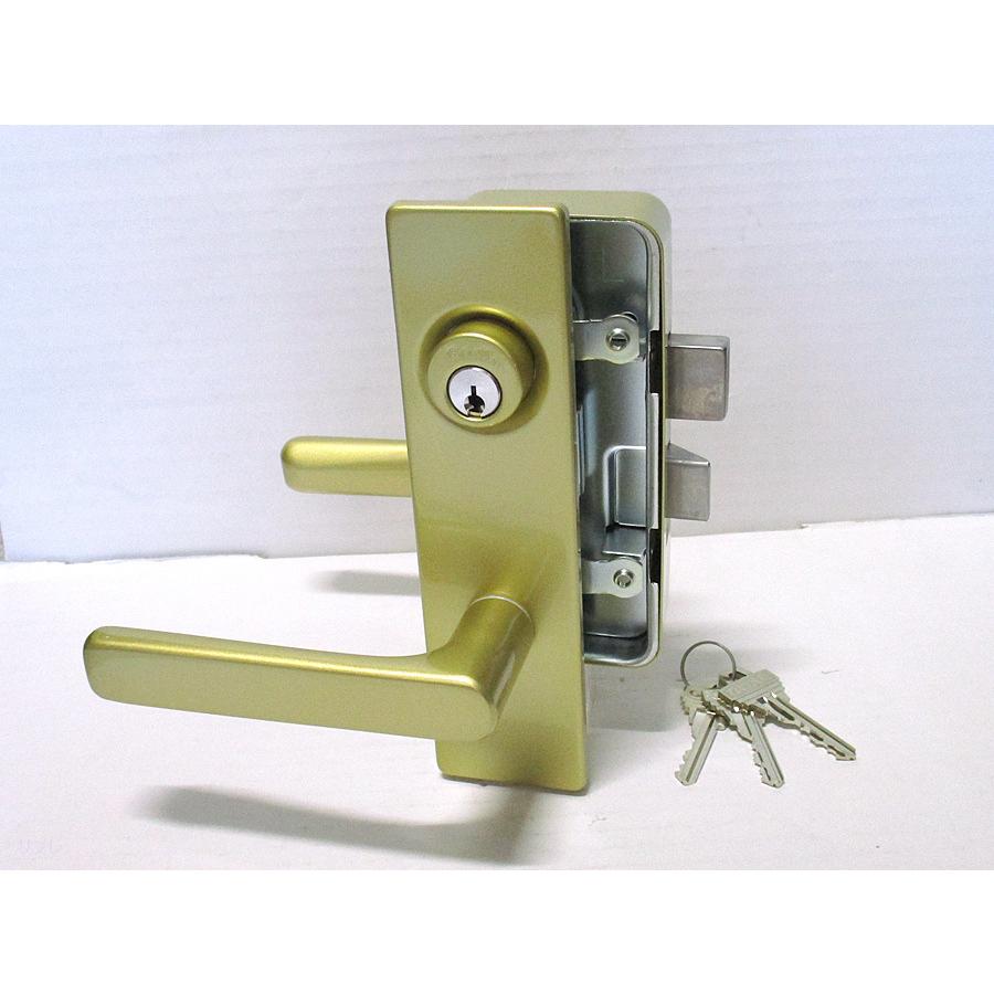 本ピンシリンダを装着したゴル社タイプの取替用本体セットゴルド色ですこの商品は外開ドア用でドアの外側から見フて蝶番が左鍵が右についている勝手に対応するものです子鍵は本ついています 取替用のシリンダ部のみはこちら