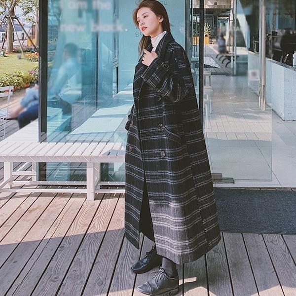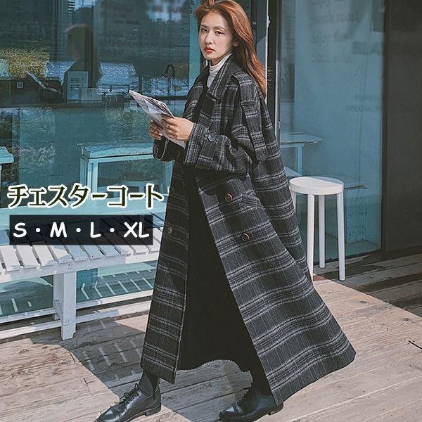 ロングチェスターコート レディース 超ロング 秋冬 アウター 長袖 ぽっちゃり オーバーサイズ カジュアル 暖かい チェック柄 S M L XL