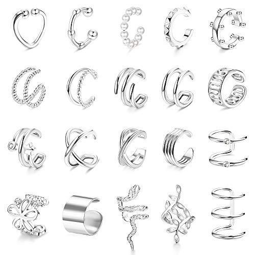 FIBO STEEL イヤーカフイヤリング20点セット レディース ノンピアス 華奢 軟骨 イヤークリップ ラップ イヤリングセット 調整可能