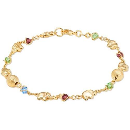 Barzel 18Kゴールドメッキ エレファントパレード 華奢なクリスタルボールアンクレット - ブラジル製