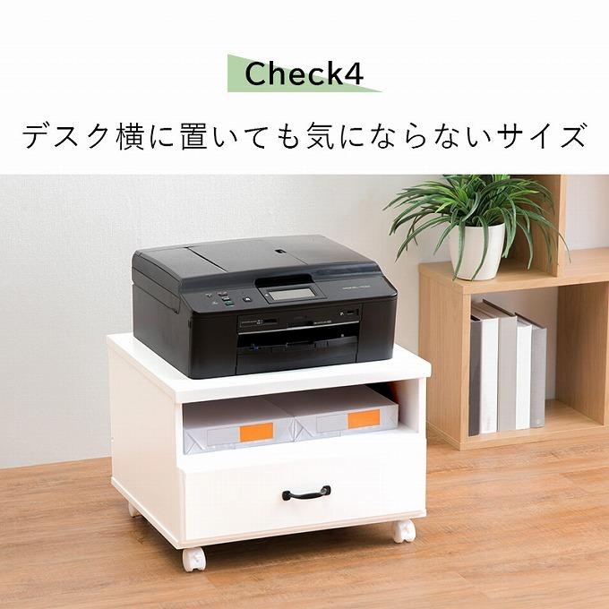サイドワゴン プリンターワゴン キャスター付き 白 ホワイト ナチュラル スリム おしゃれ 木製 天然木 キャスター 引き出し付き デスクワゴン プリンター収納
