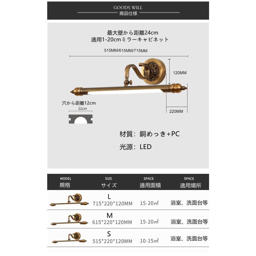 Lサイズ 防水防霧設計 照明角度240°調節 ブラケットライト ウォールライト 欧米LEDランプ 洗面所照明 照明器具 ミラーキャビネットライト 浴室灯 鏡台 工事必要