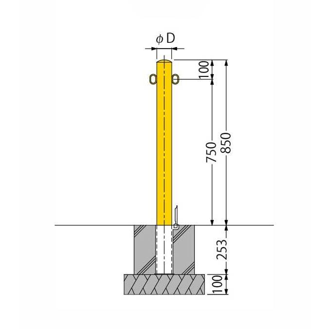 カネソウ 車止め φ76.3×H850mm 脱着式 スチール製 両フック付 鍵なし EC0785RC-D