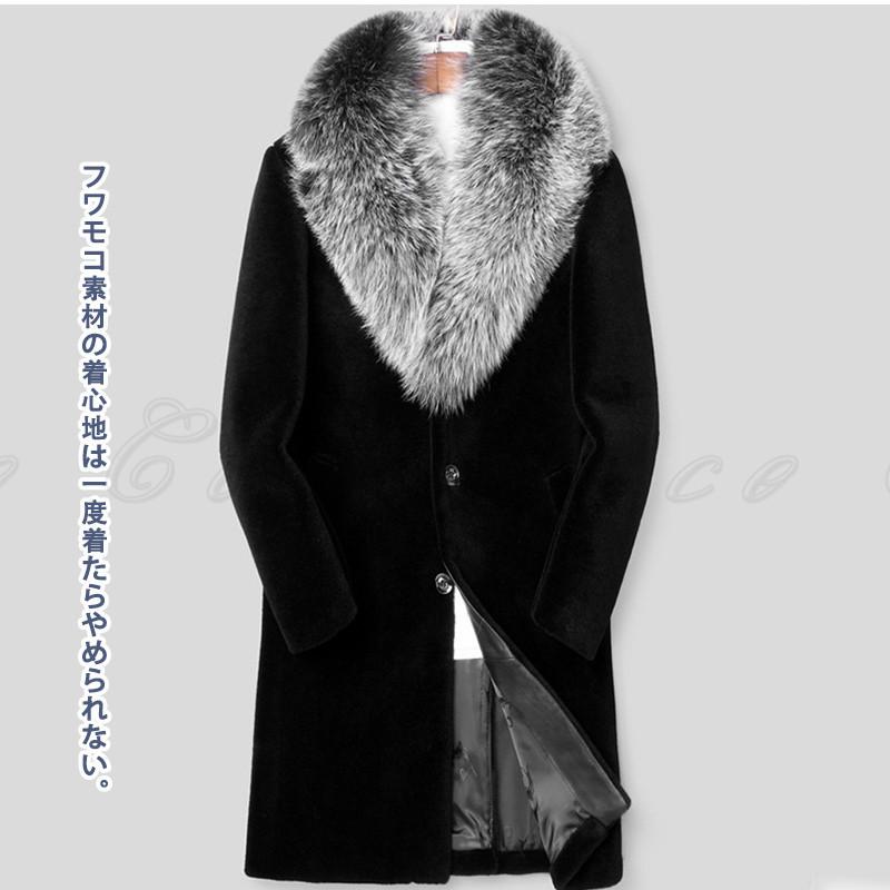 ファーコート メンズ ふわふわ もこもこ ふんわり ロング丈コート 左右にポケット付き 肌触り 縦長効果 個性的 高級感 上品 プレゼント ギフト 贈り物 送料無料