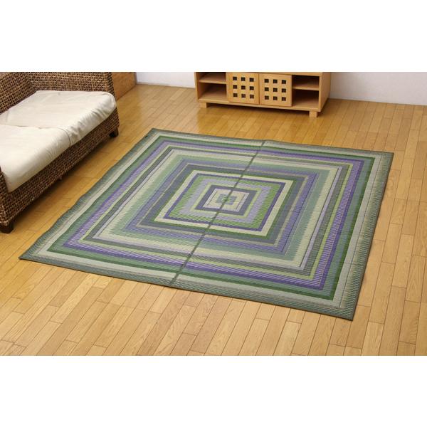 イケヒコ 純国産 袋三重織 い草ラグカーペット 『DXグラデーション』 グリーン 約191×191(裏:不織布) 1709720