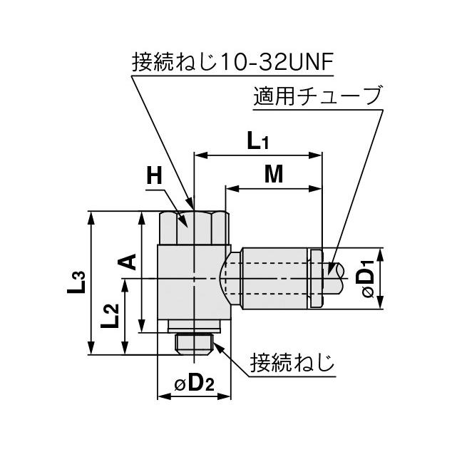 メカ型式セット個入適用チュブ外径インチ接続ねじ六角対辺有効断面積 ナイロン有効断面積 ウレタン最小穴径質量材質黄銅無電解ニッケルめっき出荷目安営業日以内 めねじおよびおねじどちらからでも同一方向および度方向の分岐に使用多連接続も可能 ガスケットシル チュブ着脱性向上 小型軽量化 接続ねじ 最小穴径 適用チュブインチサイズ 接続ねじ 使用流体空気水 使用圧力範囲 保証耐圧力 周囲温度および使用流体温度水の場合凍結なきこと ねじ取付部ねじユニファイ細目ねじ ねじナット部ユニファイ細目ねじ ねじ部のシルシル剤付 適用チュブチュブ材質ナイロンソフトナイロンポリウレタンチュブ外径 ボディ スタッドねじ部 チャック ガイド リリスブッシュ パッキンリングシルリング ガスケット ソフトナイロンチュブの場合水は使用できません サジ圧は最高使用圧力以下に抑えてご使用ください 漏れがゼロではないのでリクテスタなど真空保持でのご使用は避けてください は最大径を意味します