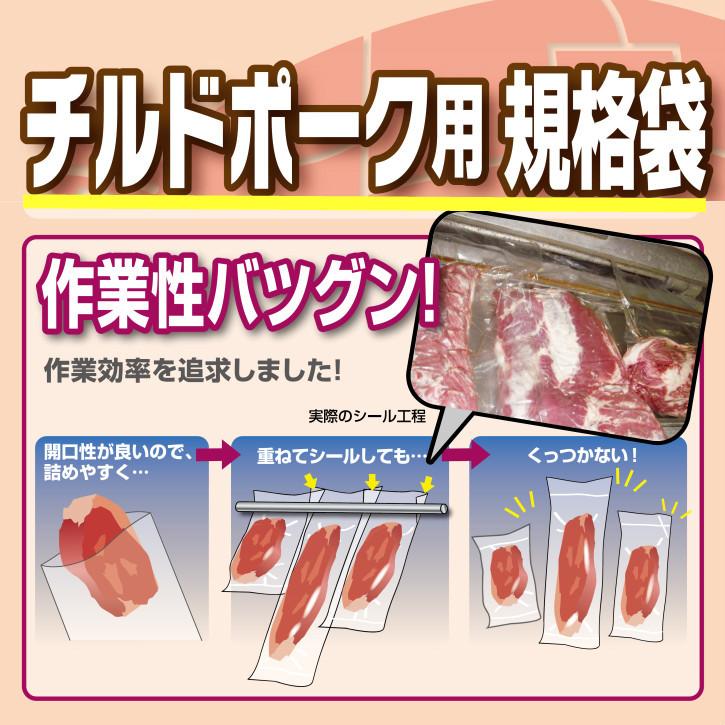 豚肉真空包装の強い味方作業性抜群重ねシル可能畜肉用途のほとんどのサイズをカバ開口性良好大きな豚肉も詰めやすい保香性に優れる開口部が低カル重ねた状態から取り出しやすくシル時のかみ込みも少ない使用例ウデバラモモ商品名チルドポク 寸法厚み幅長さ 入数枚真空袋の注意事項家庭用や海外製の真空包装機は本商品に対応していない場合がございます必ずお手持ちの真空袋に対応していることをご確認の上ご購入くださいませ 真空包装機 確認 クリロン 直送