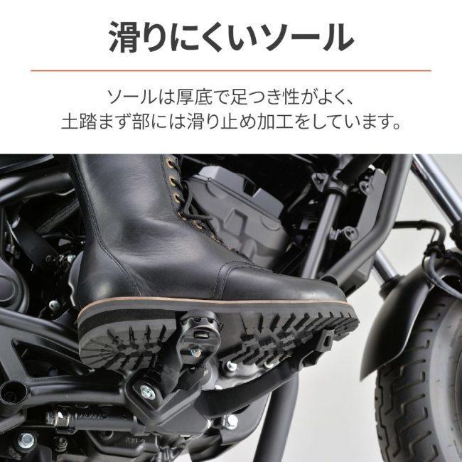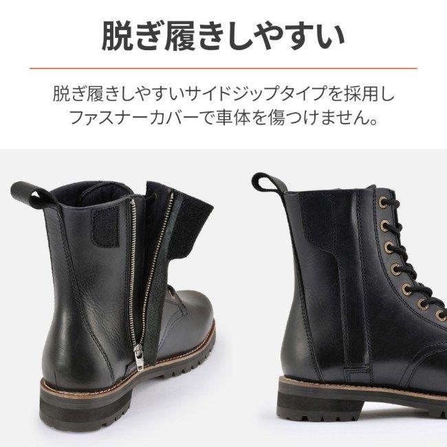 スマホの場合は商品情報を全て表示後在庫確認ボタンを押してください商品番号コド商品概要カラブラック素材アッパ部分牛革フルグレインレザ内装ポリエステルソル部分合成ラバ本革シフトパッド内蔵サイドジップ 注意この商品は下記となります必ずご確認ください サイズ サイズはこちら サイズはこちら サイズはこちら サイズはこちら サイズはこちら リンク先に商品がない場合すでに完売している商品となります予めご了承ください こだわり抜いた上質でしなやかなフルグレインレザを使用しているので履き込むほど足へ馴染み自分好みのエイジングが楽しめます いかにもバイク用という見た目ではなくバイクを降りてアバンシンにもマッチします シフトパッドやくるぶしパッドは内側に内蔵 ソルは違和感のない厚底で足つき性がよく土踏まず部を滑り止め加工することで安定したライディングが楽しめます ミドル丈の高さによって程よいホルド感が得られます 着用感や見た目にこだわったミドルカット専用の新規足形設計 ワイズ相当 防水機能はありません メカ都合により商品の仕様変更がある場合がございますご了承ください