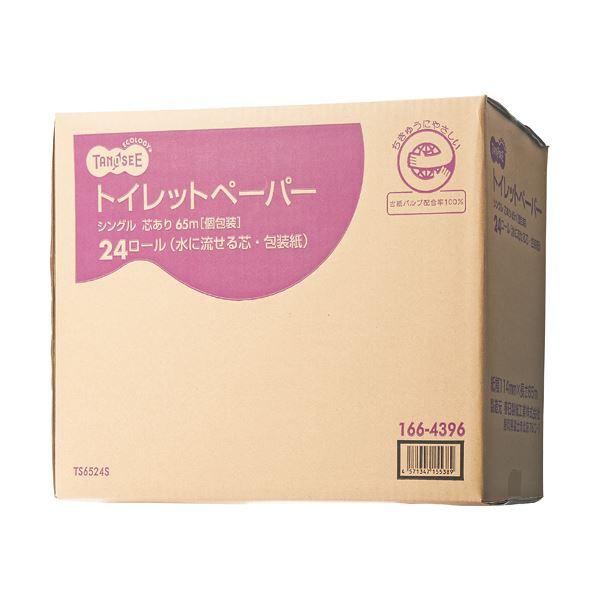 (まとめ)TANOSEE トイレットペーパー水に流せる芯&包装紙 シングル 65m 1ケース(24ロール)〔×5セット〕