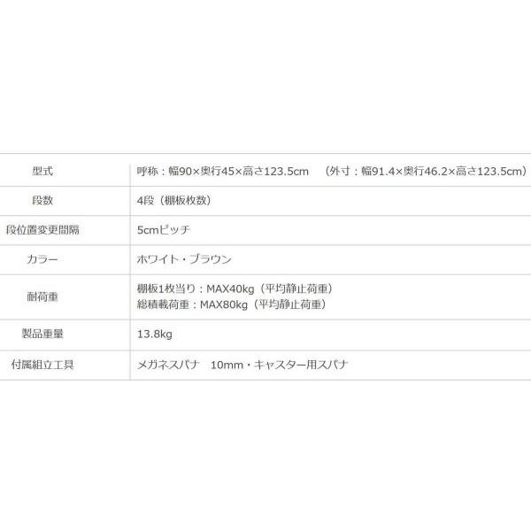 スマートラック NSTR-K467 キャスター付き 間口900×奥行450×高さ1235mm 4段 ホワイト