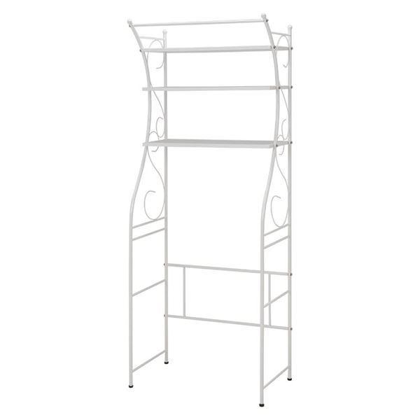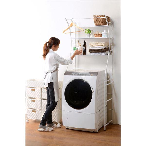 洗濯機ラック/ランドリー収納 〔ホワイト〕 幅75cm スチール 棚板 アジャスター付 組立式 〔脱衣所 洗面所〕〔〕