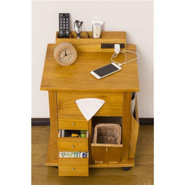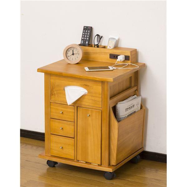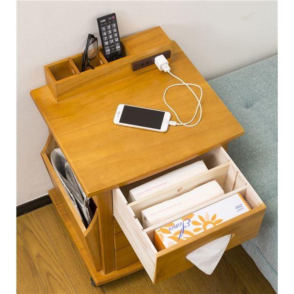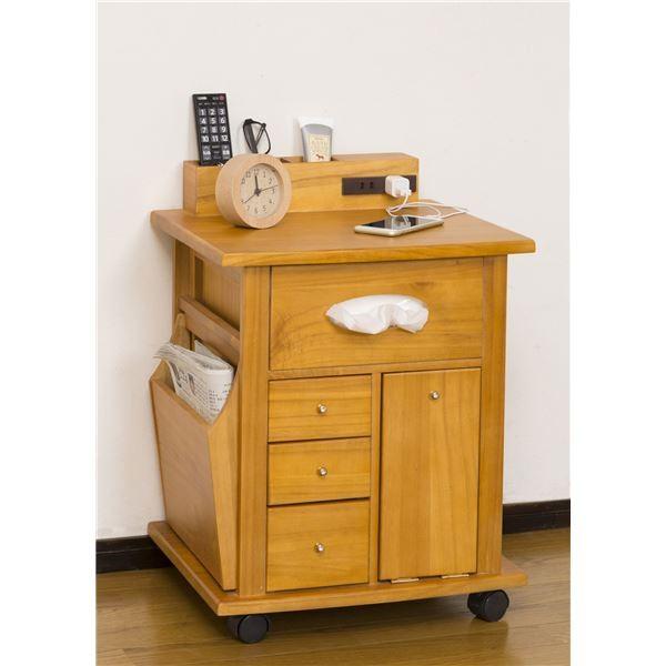 すっ桐 ナイトワゴン/サイドテーブル 〔幅43cm×奥行38cm〕 木製 二口コンセント/キャスター付き 〔完成品〕【メーカー直送】