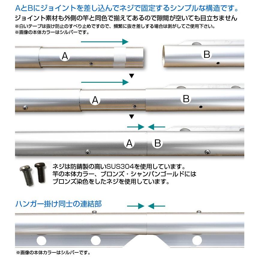 物干し竿 組み立て式 ハンガー掛け付き 1本竿 サビない 32パイ 2本 長さ 4m シャンパンゴールド色 キャップの色が選べる 屋外 屋内 ベランダに最適な ものほし竿