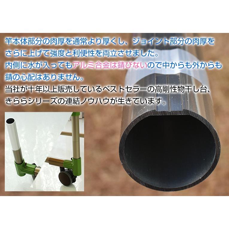 組み立て式なのでマンションのエレベタ等長い物が入らない場所でも搬入できます強度は通常の一本竿と同等以上です材質はもちろん錆びないアルミ合金製風が吹いてもハンガが寄らないハンガ掛け付き 搬入しやすい組み立て式のハンガ掛け付き一本竿強度面も勿論クリア 組み立ては日曜大工が苦手な方でも簡単にできます 物干し竿 物干し竿 物干し竿 物干し竿 物干し竿 製品仕様 太さ 竿本体キャップ直径竿の一番太い部分ハンガを掛ける部分含めて 長さ キャップの膨らみを含むハンガをかける部分両側丸い部分 ハンガを掛ける穴の数 個 ハンガを掛ける穴の直径 材質 本体アルミ合金本多金属工業株式会社 表面アルマイト処理クリア樹脂コティング キャップ樹脂 シルアルミ製シル 重さ 概ね前後です 干せる重さ キロ洗濯物は均等に干してください 製造 材料生産共に国内生産日本製 保険 法適用商品 商品に自信があるからできる当社の製品はメカ年保証リサイクル保証 当社の製品は当社が責任持ってリサイクルいたしますのでゴミになりません 当社までの送料はお客様負担となります 当社の製品は竿物干し台すべてが 年の品質保証がついています