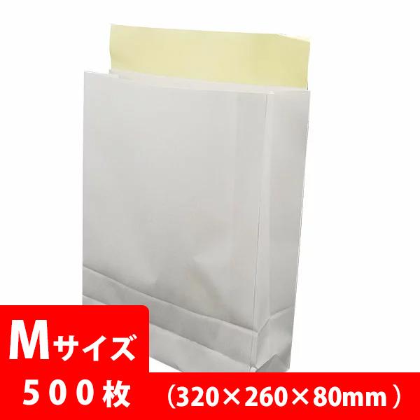 宅配袋 お徳用 (Mサイズ 500枚) (送料無料) シール付 宅配用袋 ホワイト 無地 梱包袋 梱包資材 マチあり 白袋 送料無料