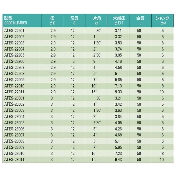 【送料無料】 ATOM ATES-20408 テーパーエンドミル φ0.4x5°