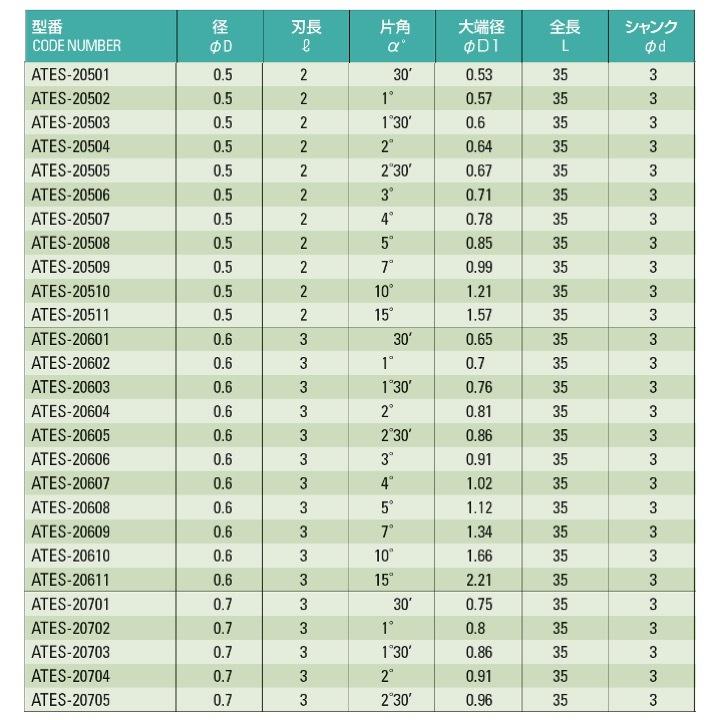 【送料無料】 ATOM ATES-21011 テーパーエンドミル φ1x15°