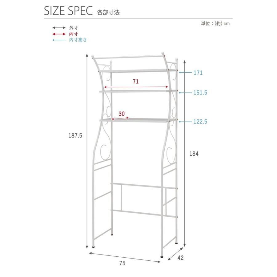 洗濯機 ラック 棚 おしゃれ ランドリーラック スチール 洗濯機 上 収納 高さ調整 可動 棚 ガタつき防止 おしゃれ 三段 姫 ホワイト ブラウン 新生活