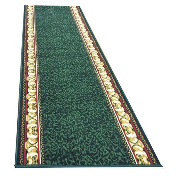 オリエンタル柄 廊下敷き/ラグマット 〔グリーン 67×440cm〕 長方形 洗える 防滑加工 『アイラス』 〔玄関 キッチン〕〔〕