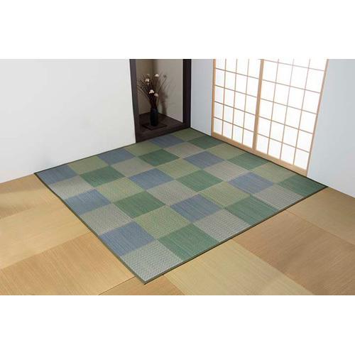 メーカー直送 イケヒコ い草ラグ 花ござ カーペット ラグ 4.5畳 格子柄 市松柄 ピーア ブルー 江戸間4.5畳 約261×261cm 畳 たたみ