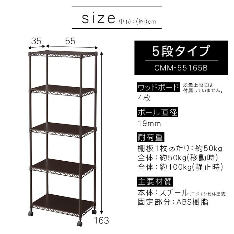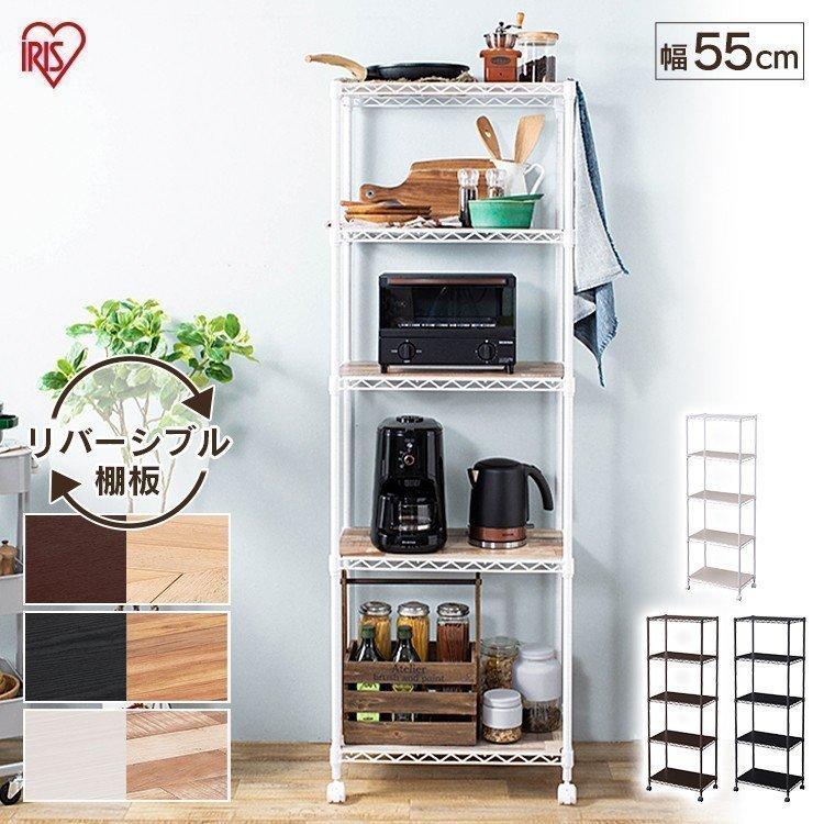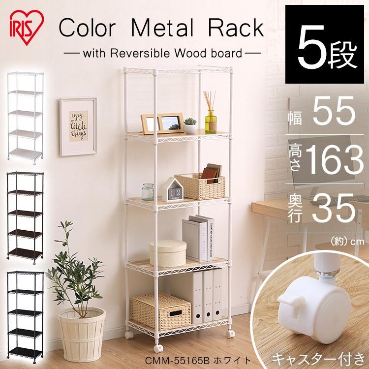 カラーメタルラック スチールラック 収納 キッチン リビング おしゃれ ウッドボード付き CMM-55165B ホワイト ブラック ブラウン アイリスオーヤマ