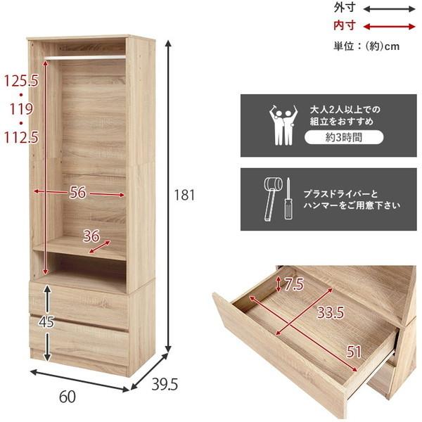 商品特長スペック シンプルに収納出来る引き出し収納付きワドロブ サイズ約幅奥行高さ引き出し内寸約幅奥行深さ 主材プリント紙化粧繊維板 組立式