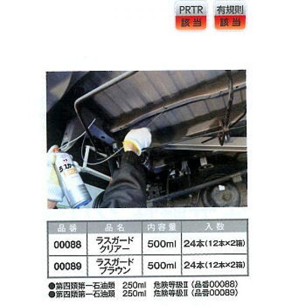 ラスガドブラウンワックス状長期防錆剤 スプレ 本入り半乾性硬質タイプ乾燥すると手で触れても防食コトが剥離しません屋外の湿気塩分化学的または腐食性の雰囲気など悪条件化で優れた防錆力を発揮します屋外 ラスガドクリヤ ラスガドブラウン イチネンケミカルズ旧タイホコザイ ワックス状長期防錆剤浸透性半乾性防錆塗料 特 長 半乾性硬質タイプ乾燥すると手で触れても防食コトが剥離しません 屋外の湿気塩分化学的または腐食性の雰囲気など悪条件化で優れた防錆力を発揮します 屋外屋内での長期防錆に最適です 浸透性が有り細部にわたって防錆コトが可能です 用 途 鉄工材機械類の屋内屋外貯蔵時 加工貯蔵及び搬送中の部品などの防錆 海岸地帯の工場家屋ガレジの鉄材設備機器などの防食 プレス金型などの長期防錆 性能 性状 塩水噴霧 時間以上 屋内防錆 年以上膜厚 屋外防錆 年以上膜厚 膜 厚 使用温度範囲 以下 ラスガドクリヤ半透明 ラスガドブラウン茶
