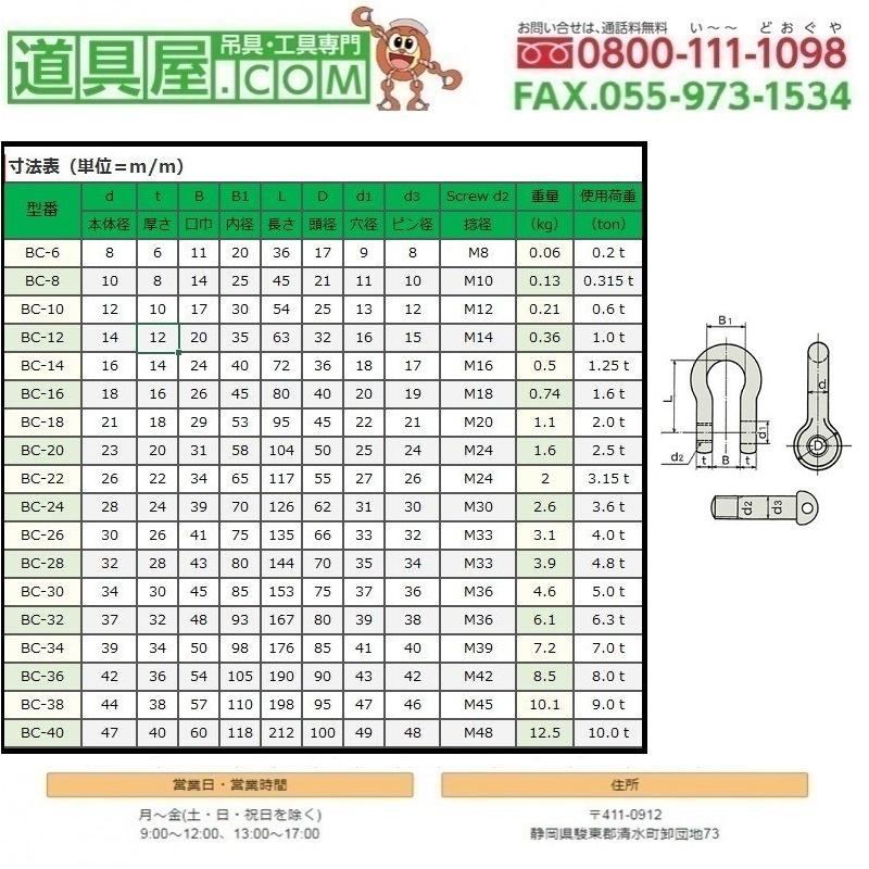 日本JIS規格BCシャックル クロ M級 使用荷重1.6T 10個入り