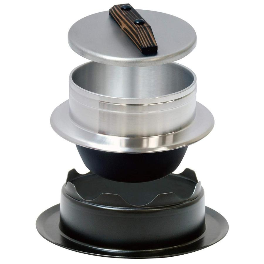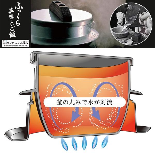 ご家庭のガスコンロで簡単に美味しくご飯が炊ける本格的な釜のセットです熟練職人の手でひとつひとつ丁寧に造られた特製釜と圧力蓋かまどがご飯をふっくら仕上げます本体は熱伝導率が陶器の約倍のアルミニウムキャスト製なので短時間で温度が上昇します釜の持つ丸みのある形は加熱した時に理想的な対流を起こしご飯を美味しく仕上げます本体内側を一周した便利な水位線付きですサイズ釜直径高さかまど直径高さ重量内容量合炊き材質本体アルミニウム合金本体内面研磨仕上げ本体外面施盤加工つば下耐熱焼付け塗装蓋ステンレス鋼蓋ツマミ焼杉かまどアルミ板耐熱焼付け塗装生産国日本製備考ガス火専用ではご使用