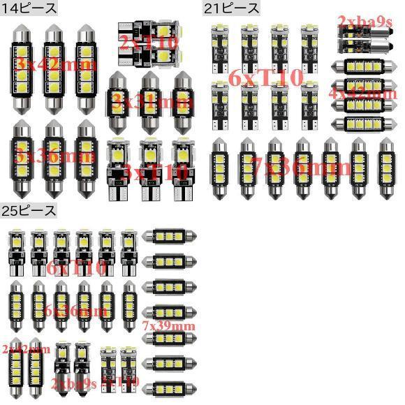 車用 内装 LED ライト キット 適用: シトロエン/CITROEN サクソ エグザンティア クサラ C-ZERO エラーフリー T10 21ピース・25ピース ホワイト AL-JJ-2594 AL