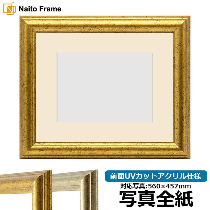写真用額縁 9580/ゴールド 写真全紙(560×457mm) 前面UVカットアクリル仕様 マット付き
