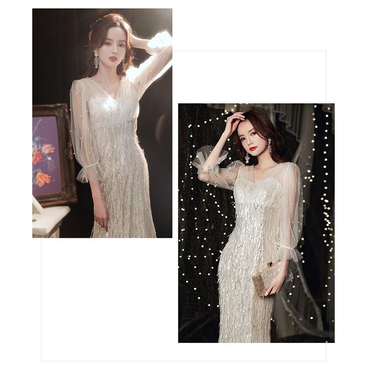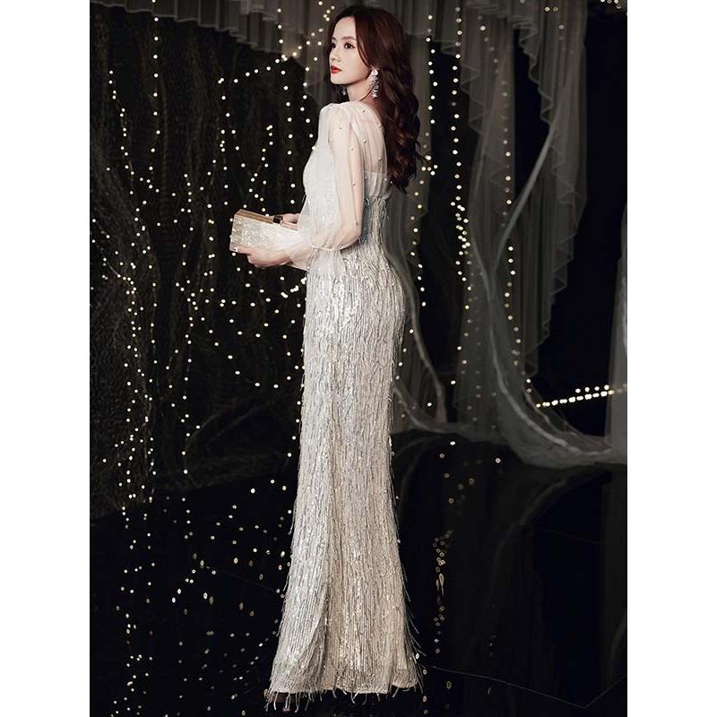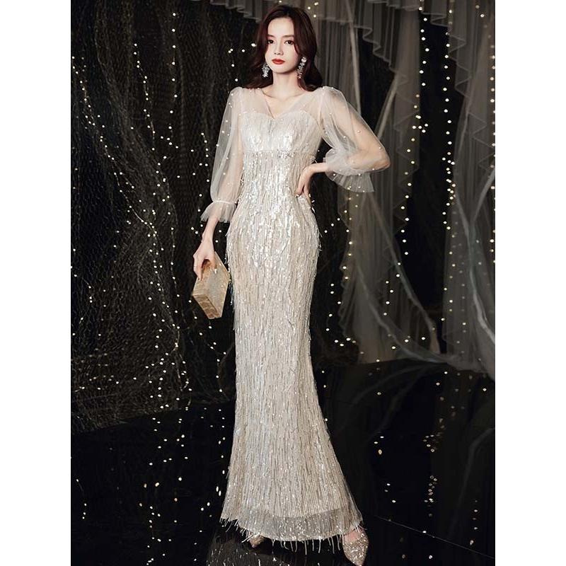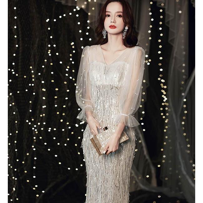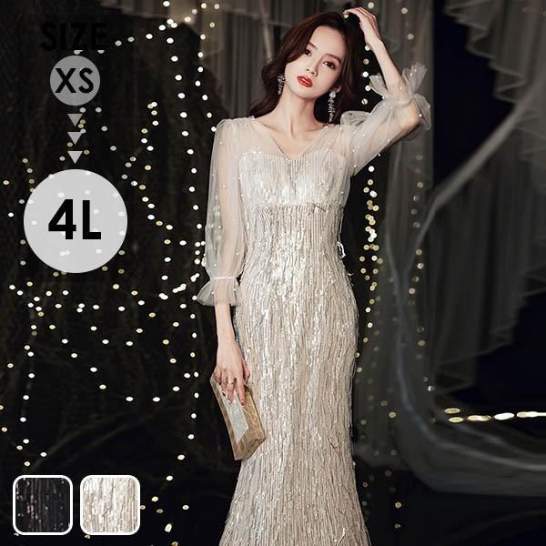 ロングドレス ドレス マーメイド 黒 袖ありポワン袖 カシュクール キラ 大きいサイズ 大人 演奏会 ピアノ ロング 4L 20代 30代 40代