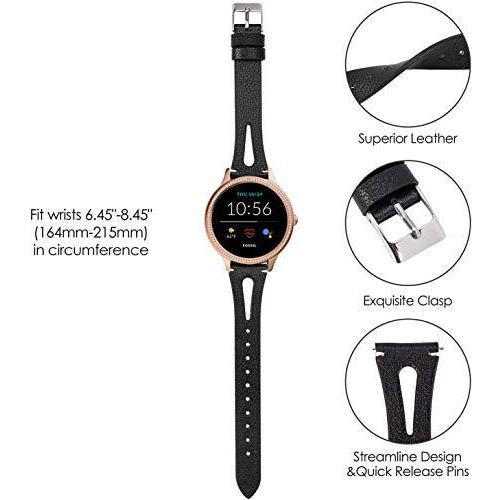 Compatible for Fossil Women Gen 5E Band, YOUkei 18mm Slim Vintage Leather S