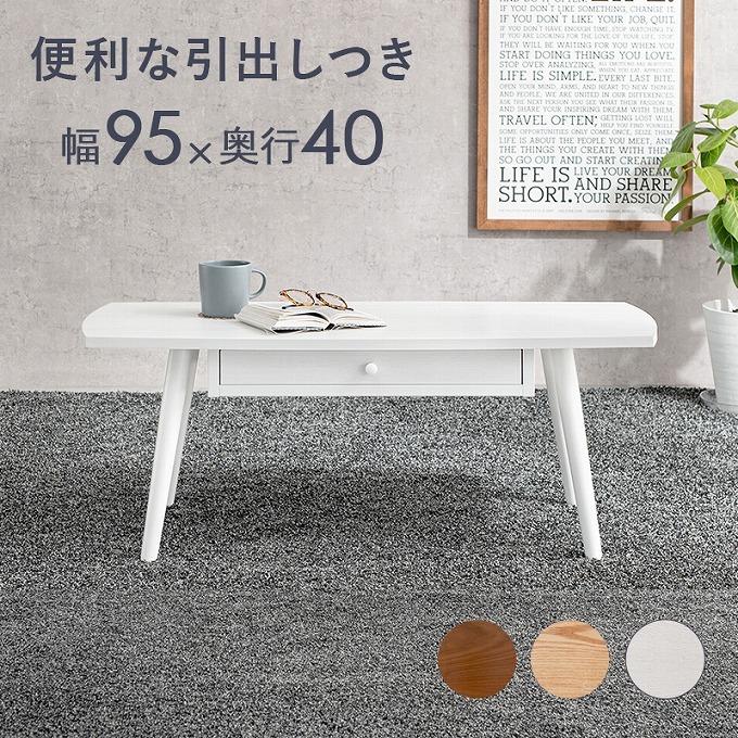ローテーブル おしゃれ テーブル 北欧 木製 長方形 両面引出し 幅95cm 奥行40cm 引き出し 収納 センターテーブル リビングテーブル 一人暮らし 新生活