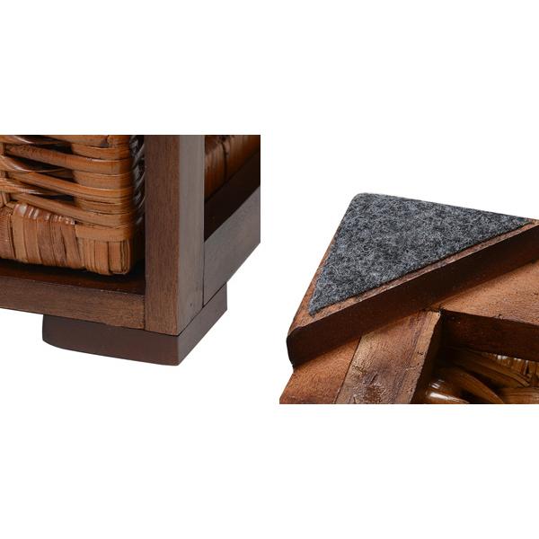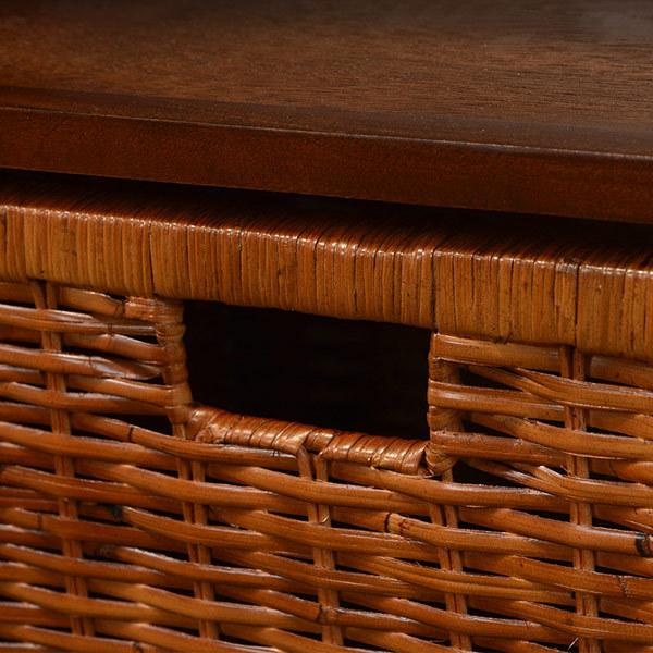 サイズ約幅奥行高さ内容量台材質主材マホガニ材籐引出内布付天然木とラタンを組み合わせたランドリチェストですオプンスペスには小物が飾れますチェストの上部は洗剤や小物バスケットなどを置くのに最適な天板がついていますラタン製なので通気性が良く丈夫で軽量です湿気の多い脱衣所でも清涼感を保ちお手入れも簡単で衛生的です脱衣所での使用はもちろんリビングや寝室にもオススメです引出内布付きで衣類を傷めないです家具 アジアン ラタン製 ラタン家具 収納ラック 衣類収納 おしゃれ バスケット 三段 カゴ 籐製 マホガニ ランドリ収納 小物収納 リビング収納 天然素材 幅 奥行 高さ センチ 収納家具 籐家具 ブラウン 茶 モダン 和モダン 引出し 引出 引き出し 和室 寝室 ランドリ オシャレ お洒落 木とラタンを組み合わせたランドリチェスト天然木とラタンを組み合わせたランドリチェストですオプンスペスには小物が飾れますチェストの上部は洗剤や小物バスケットなどを置くのに最適な天板がついていますラタン製なので通気性が良く丈夫で軽量です湿気の多い脱衣所でも清涼感を保ちお手入れも簡単で衛生的です脱衣所での使用はもちろんリビングや寝室にもオススメです引出内布付きで衣類を傷めないですおすすめポイント 天然木とラタンを組み合わせたランドリチェストラタンなので通気性がよく丈夫で湿気の多い脱衣所でも清涼感を保ちお手入れも簡単で衛生的です天然木が高級感ある仕上がりでリビングや寝室にもオススメです 取っ手内布付きボックスには取っ手が付いているので引き出すのも持ち運びもラクラク衣類を傷めないための内布も付いています 天板付きチェストの上部は洗剤や小物バスケットなどを置くのに最適な天板がついています一時置きにも便利です ラタンは優れた素材調湿機能があり夏でも冬でもお使い頂けるラタン家具丈夫で実用的優れた素材です 天然木マホガニ世界三大銘木のつマホガニを使用していて高級感ある仕上がりと格調高い存在感が魅力です商品詳細 便利なオプンスペス 天板下部にはオプンスペスがあります 小物を置いたり脱衣した服を置いたりと便利に使えます 脚の裏にフェルト付き脚の裏にフェルトが付いているので床にキズがつきにくく安心ですサイズ シリズ紹介 段 幅 段 幅 段 幅 段 幅 段 幅 段 幅 段 幅 段 幅
