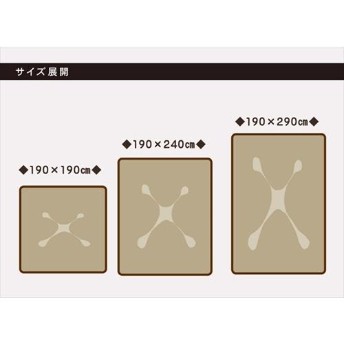 掘りごたつ用 洗える ホットカーペット対応ラグ H舞ツー堀 ブラウン 190×290cm(穴部90×150cm)