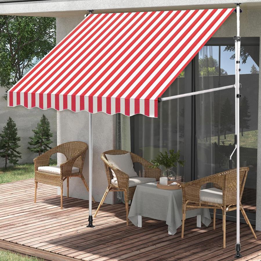 オーニングテント 日よけシェード パラソル つっぱり サンシェード 巻き取り式 屋外 2.15~3.1M 手動 アーム伸縮タイプ オーニング雨よけ 撥水加工 UVカット