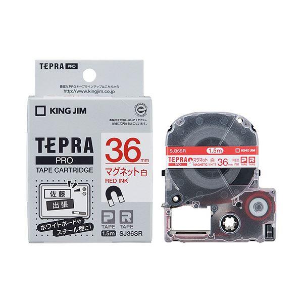 (まとめ) キングジム テプラ PRO テープカートリッジ マグネットテープ 36mm 白/赤文字 SJ36SR 1個 〔×4セット〕