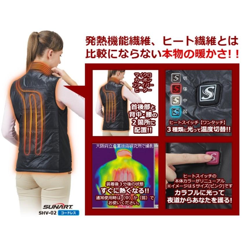 電熱ベスト バッテリー付き 首ったけベスト Mサイズ SHV-02(M) クマガイ電工 日本製 繊維ヒーター 釣り フィッシング 冬 暖かい アウトドア バイク SUNART