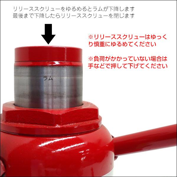 商品説明安全バルブ付きで安心 定格荷重以上の荷重がかかると安全弁が働きジャッキ操作を行ってもラムが伸びなくなります 能力以上の危険な作業を行うことを防ぎます小さなボディでハイパワ油圧式ボトルジャッキです土木建築現場バスやトラックなどのタイヤ交換にも建物の補修工事機械のレベル調整重量物の運搬防災用資材能力 最高位約最低位約揚程約約重量 約台入り簡易説明書付ご注意安全弁安全バルブは調整されていますので絶対にさわらないでください専門店ではございませんためご使用方法等につきましてのお問い合わせにはお答えできかねます またサポト等も行っておりません本商品を使用した際に発生したトラブル事故につきまして当社は一切の責任を負いません ご使用に関しましては全て自己責任にてお願い致します輸入品入荷時によりラベルのデザインなど細かな仕様変更がございます ご了承の上ご落札お願いいたします送料全国円 東北北海道沖縄以外東北円北海道沖縄円輸入品安全バルブ付きで安心 定格荷重以上の荷重がかかると安全弁が働きジャッキ操作を行ってもラムが伸びなくなります 能力以上の危険な作業を行うことを防ぎます小さなボディでハイパワ油圧式ボトルジャッキです土木建築現場バスやトラックなどのタイヤ交換にも建物の補修工事機械のレベル調整重量物の運搬防災用資材能力 最高位約最低位約揚程約約重量 約台入り簡易説明書付ご注意安全弁安全バルブは調整されていますので絶対にさわらないでください専門店ではございませんためご使用方法等につきましてのお問い合わせにはお答えできかねます またサポト等も行っておりません本商品を使用した際に発生したトラブル事故につきまして当社は一切の責任を負いません ご使用に関しましては全て自己責任にてお願い致します輸入品につき若干キズ汚れ塗装剥がれ等ある場合がございます入荷時によりラベルのデザインなど細かな仕様変更がございます
