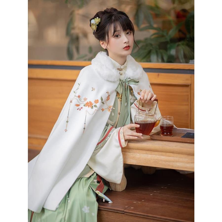 Hanfu Women Plus Fluffy刺繍入りクロー刺繍全試合秋と冬 (Color : White, Size : (sd03520)