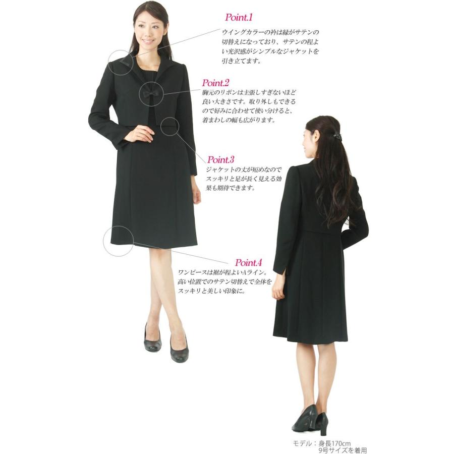 土日祝日発送可即日発送時までブラックフォマル アンサンブル号号ファストフォマルにもおススメのリボンが付いた可愛らしい印象の喪服ですジャケットのリボンは取り外しが可能袖も折り返してサイズ調整が可能ですまたコサジュを付けて卒園式や卒業式のママスタイルとしてもご使用できます素材表地ポリエステル裏地ポリエステル別布トリアセテトポリエステル 出来上がりサイズ号号号号ジャケット肩幅袖口袖丈着丈ワンピス肩幅着丈袖丈法要礼装 卒園式 ママ スツ入学式 卒業式 入園式ヤングミセス ママフォマル レス喪服 女性礼服ブラックフォマル レディス 代 代 代