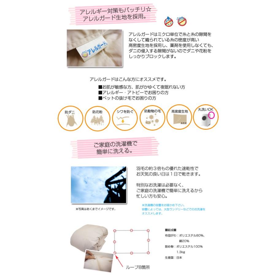 洗える布団 ダウンエッセンス掛け布団 セミダブル(170×210cm) 日本製 ウォッシャブル 丸洗い オールシーズン アレルギー対策 防ダニ効果のあるアレルガード生地