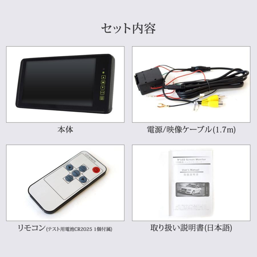 バックミラーモニター 9インチ ルームミラーモニター 12〜24V対応 WVGA画質9インチ 液晶モニター タッチボタン 送料無 B390