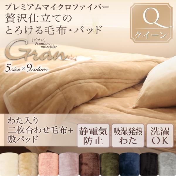 寝具カバー プレミアムマイクロファイバー贅沢仕立てのとろける毛布・パッド gran+ グランプラス 2枚合わせ毛布・パッドセット 発熱わた入り クイーン